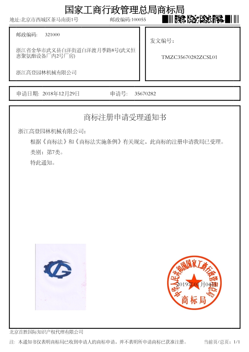 浙江高登園林機械有限公司以:“高品質(zhì),為滿足客戶需求;嚴管控,為公司基業(yè)長青”的質(zhì)量方針。公司可以根據(jù)客戶使用工況與耐久時長等要求個性化定制產(chǎn)品,在園林工具配件方面我們將不斷完善企業(yè)管理,穩(wěn)定提高產(chǎn)品質(zhì)量,為客戶提供性價比突出的產(chǎn)品和服務。未來,浙江高登園林機械有限公司將蓄勢奔向更高的高度,讓高登園林機械立足中國,走向世界!
